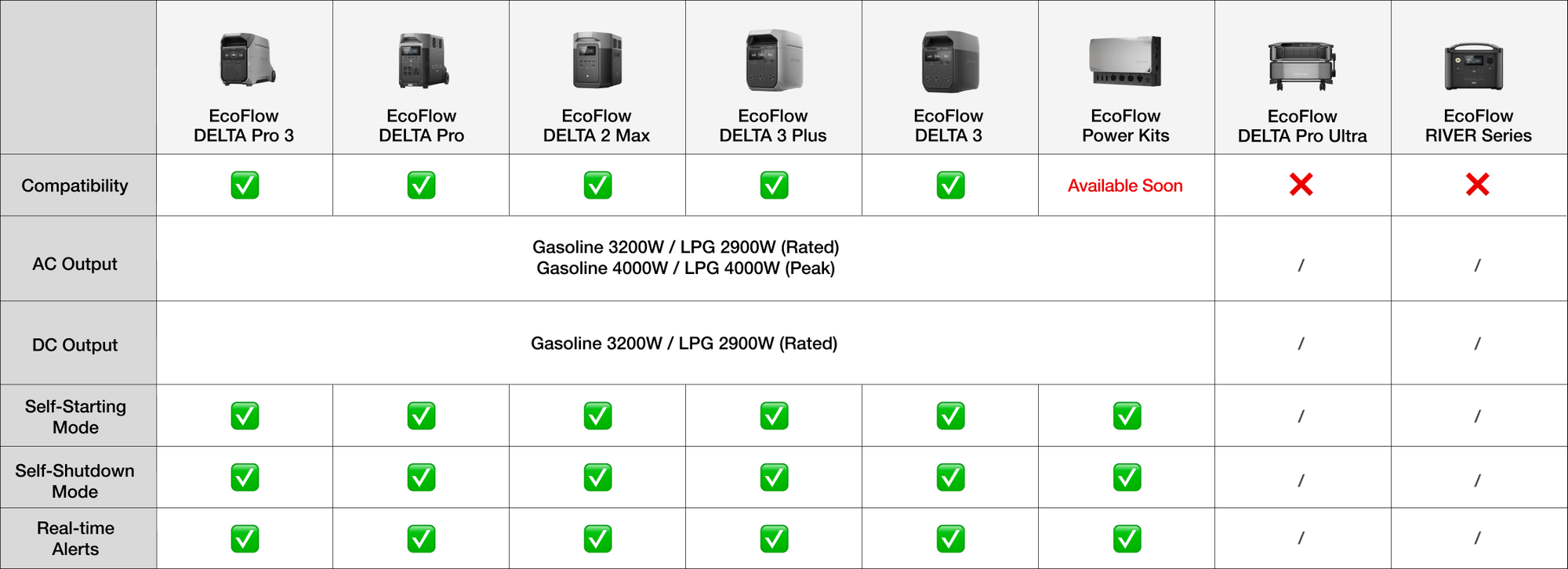 *Please note that EcoFlow Smart Generator 4000 is not compatible with Ecoflow Delta Pro Ultra/EcoFlow RIVER Series.