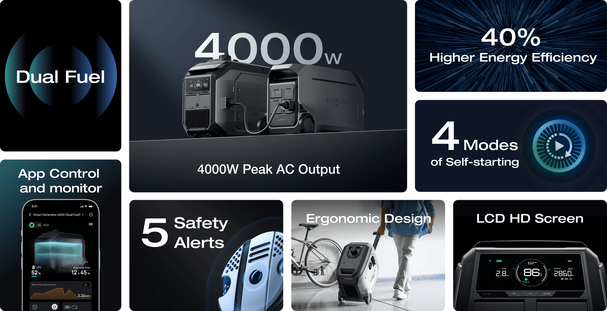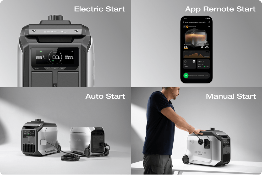 EcoFlow Smart Generator 4000 (Dual Fuel) offers intelligent and elegant start/stop methods for various scenarios, providing greater convenience.