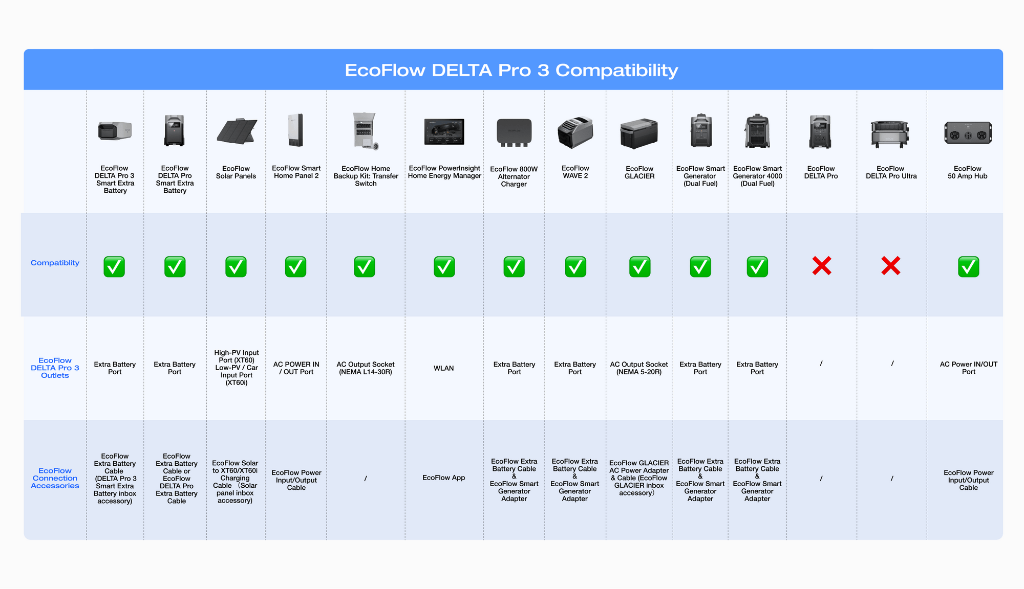 *Please note that EcoFlow DELTA Pro 3 is not compatible with EcoFlow DELTA Pro/EcoFlow DELTA Pro Ultra.