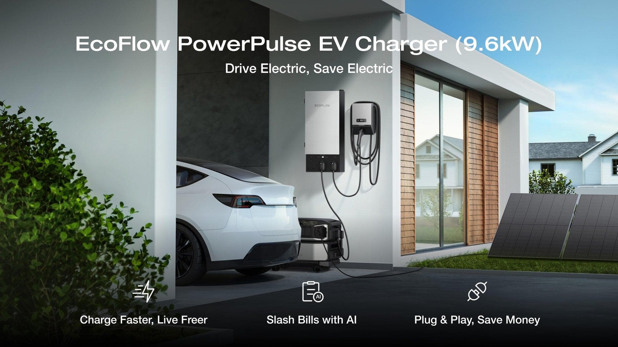 PowerPulse adapts to your routine using AI-driven charging modes. Seamlessly syncing with the EcoFlow Smart Home Panel 2 and EcoFlow DELTA Pro Ultra, it hunts for solar surplus at noon and switches to your utility's off-peak rates at midnight while keeping your EV ready for daily drives. If your EV consumes around 10kWh per day, this system can save you up to $1,095³ annually—equivalent to a full year of free commuting.