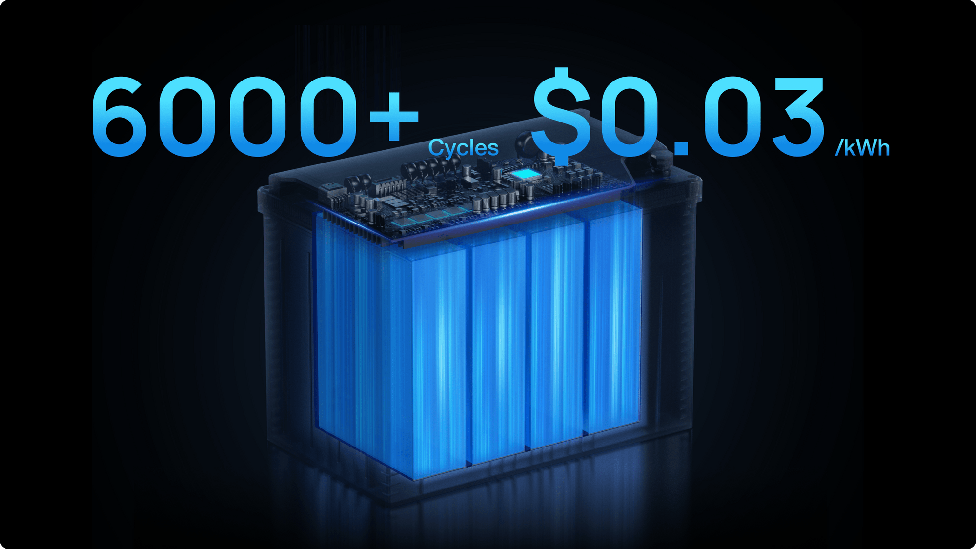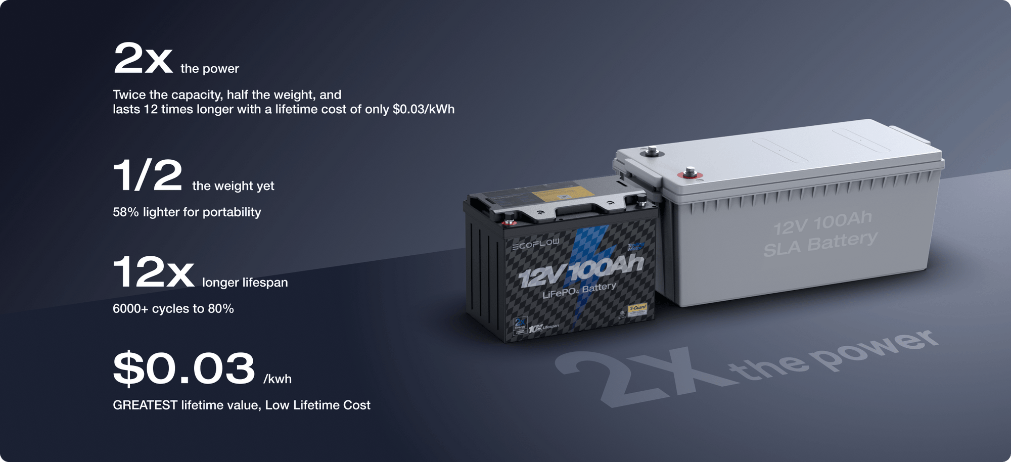 Twice the capacity, half the weight, and lasts 12 times longer with a lifetime cost of only $0.03/kWh.