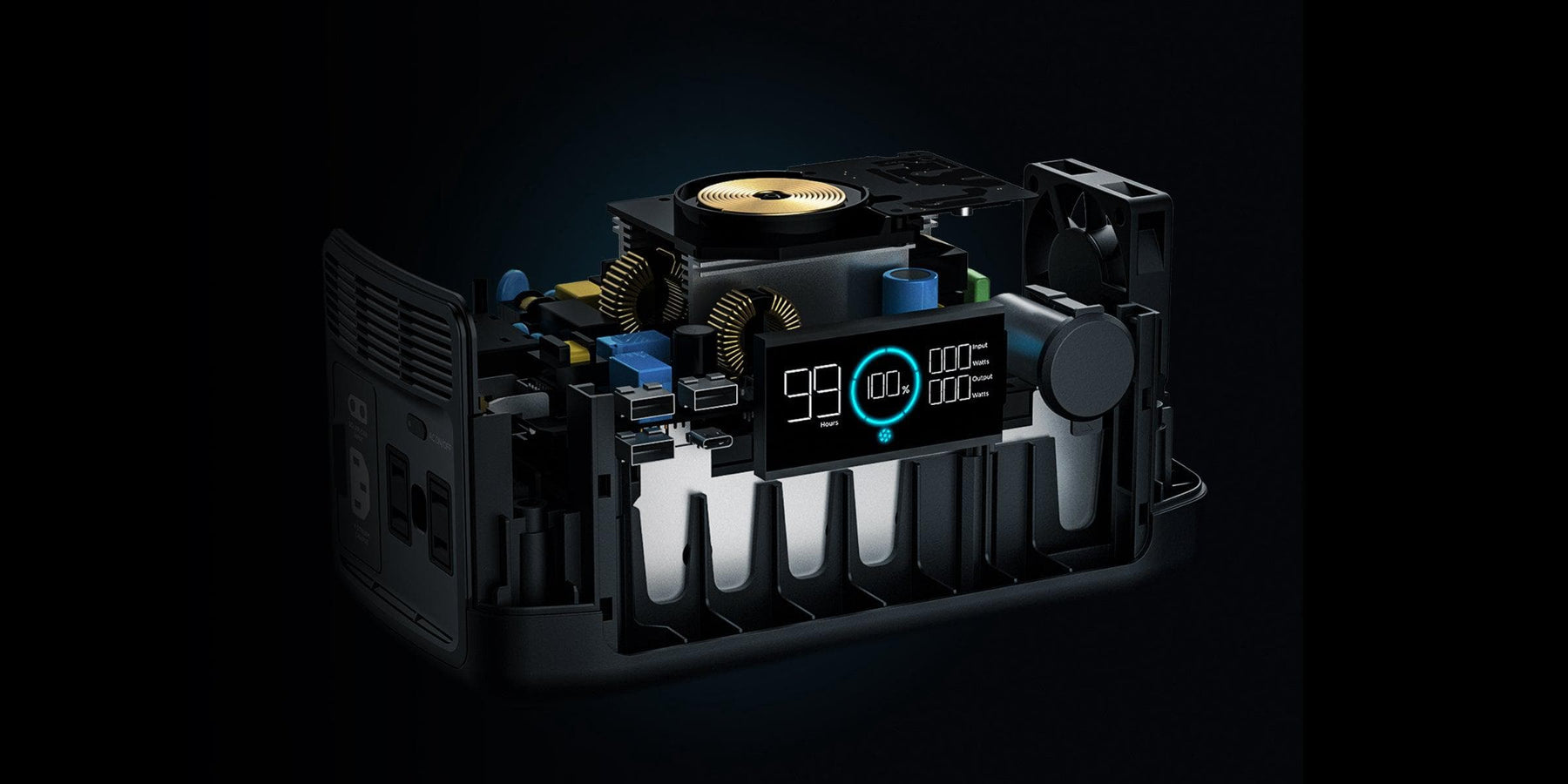 Charge from 100W of solar panels in 3—6 hours.