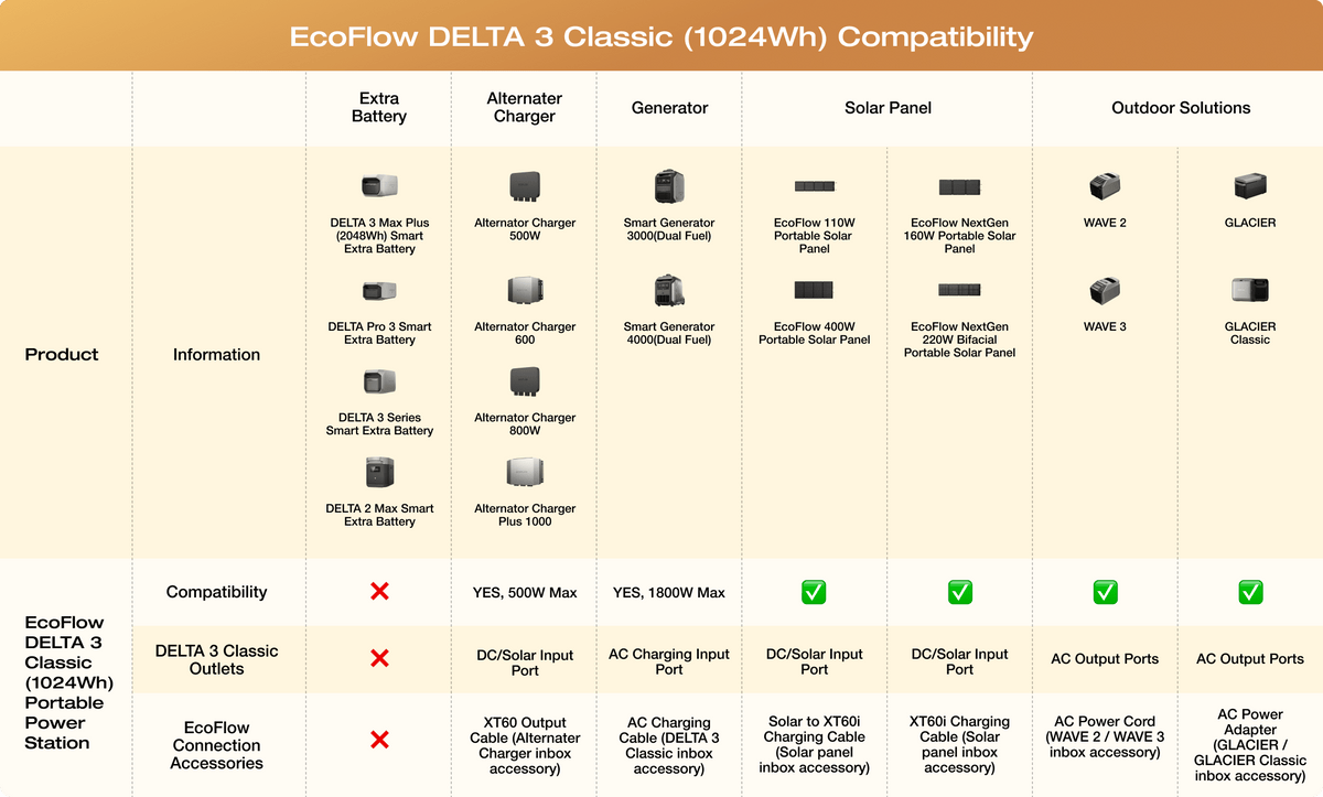 From battery chemistry to structural design, DELTA 3 Classic (1024Wh) is engineered for extreme durability, environmental resilience, and whisper-quiet performance—delivering power you can count on for over 10 years.[1]