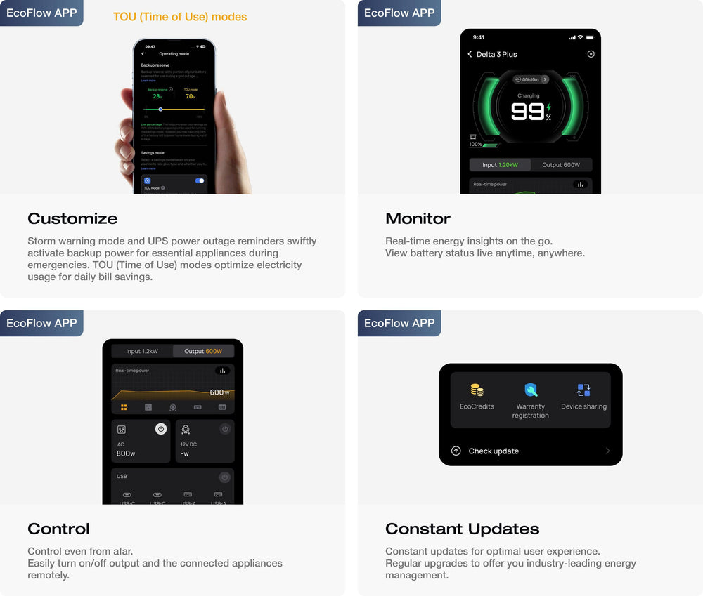 EcoFlow DELTA 3 supports 99% of household devices, including refrigerators, TVs, and computers. Plus, with X-Boost, continuously power appliances over 2600W, such as ovens (2150W), hair dryers (1800-2500W), and kettles (1200-3000W). Perfect for home backup, RV, and outdoor usage, this powerhouse ensures you're never left in the dark.