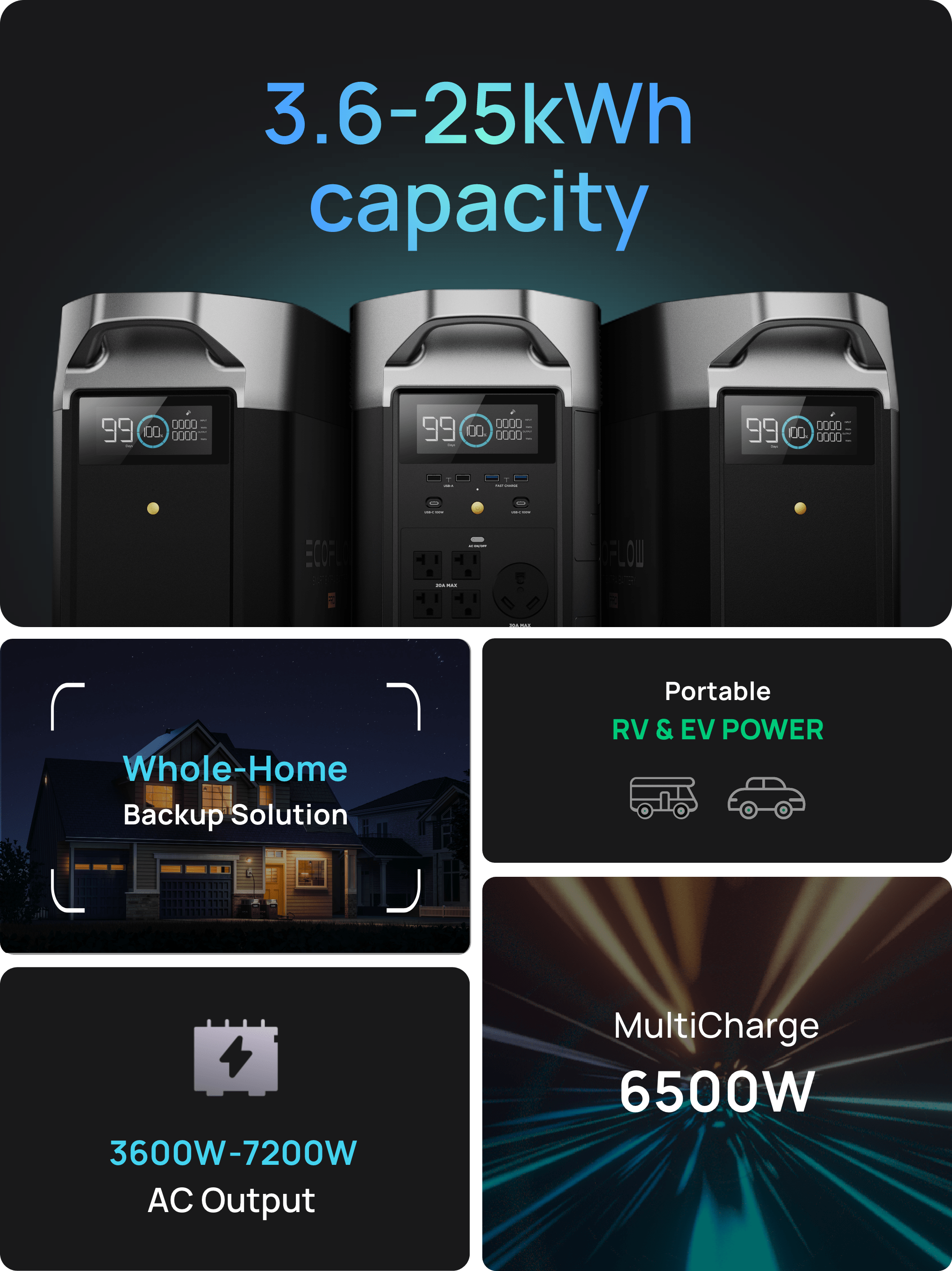 From tailgate power to extreme blackouts that last for days on end, DELTA Pro delivers up to 25kWh of capacity. With that, you're covered for any situation. That's the industry gold standard.