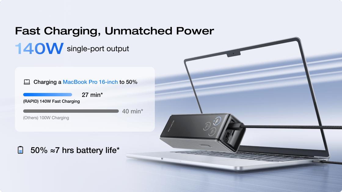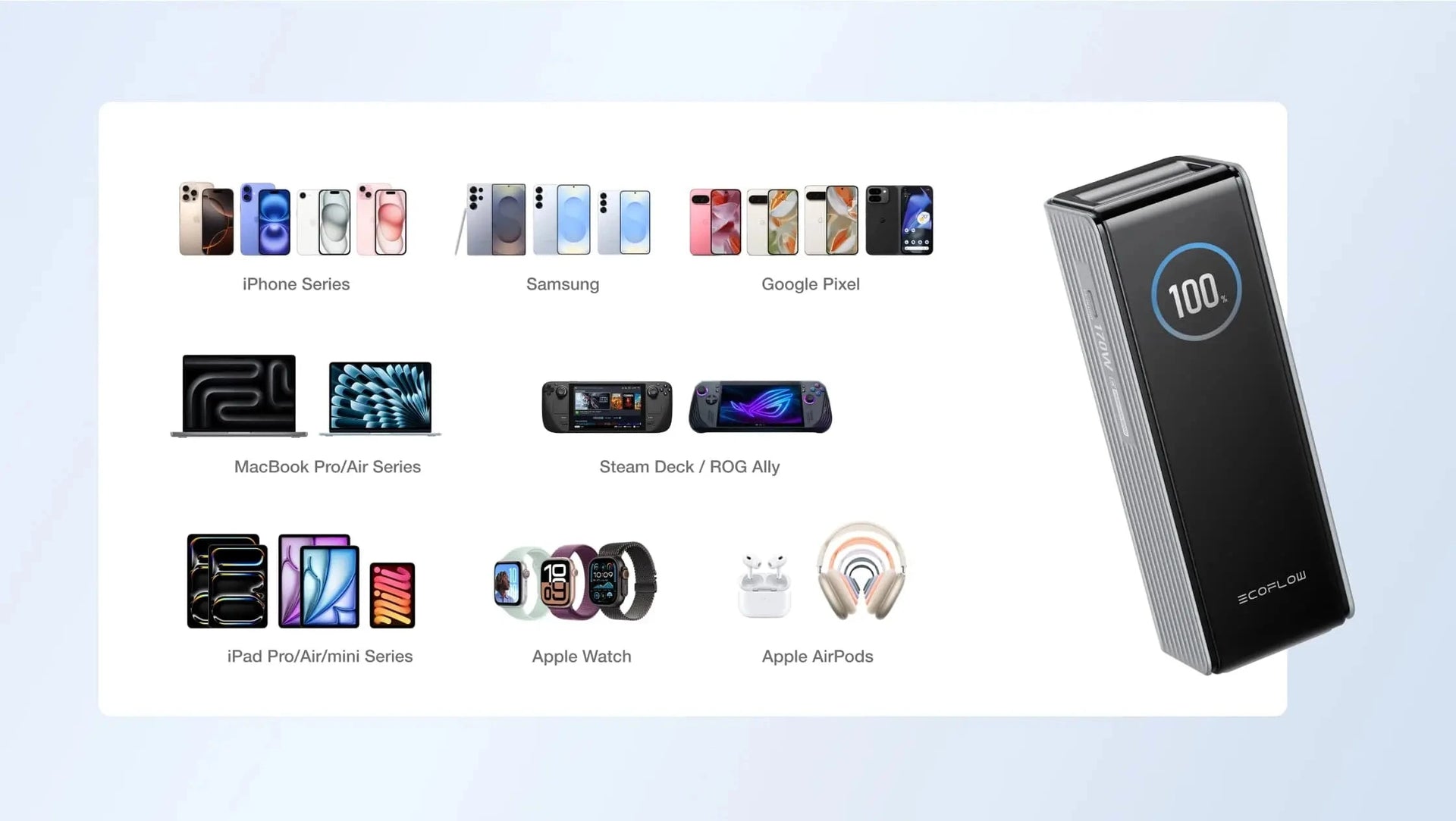 Specs - EcoFlow RAPID Power Bank (25,000mAh, 170W, 100W Built-In and Retractable Cables)