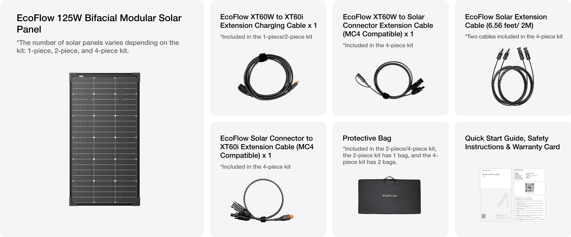 [4] Included with the 500W (125W × 4) bifacial modular solar panel set.