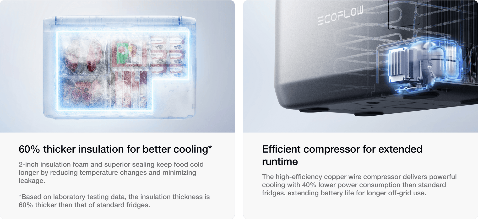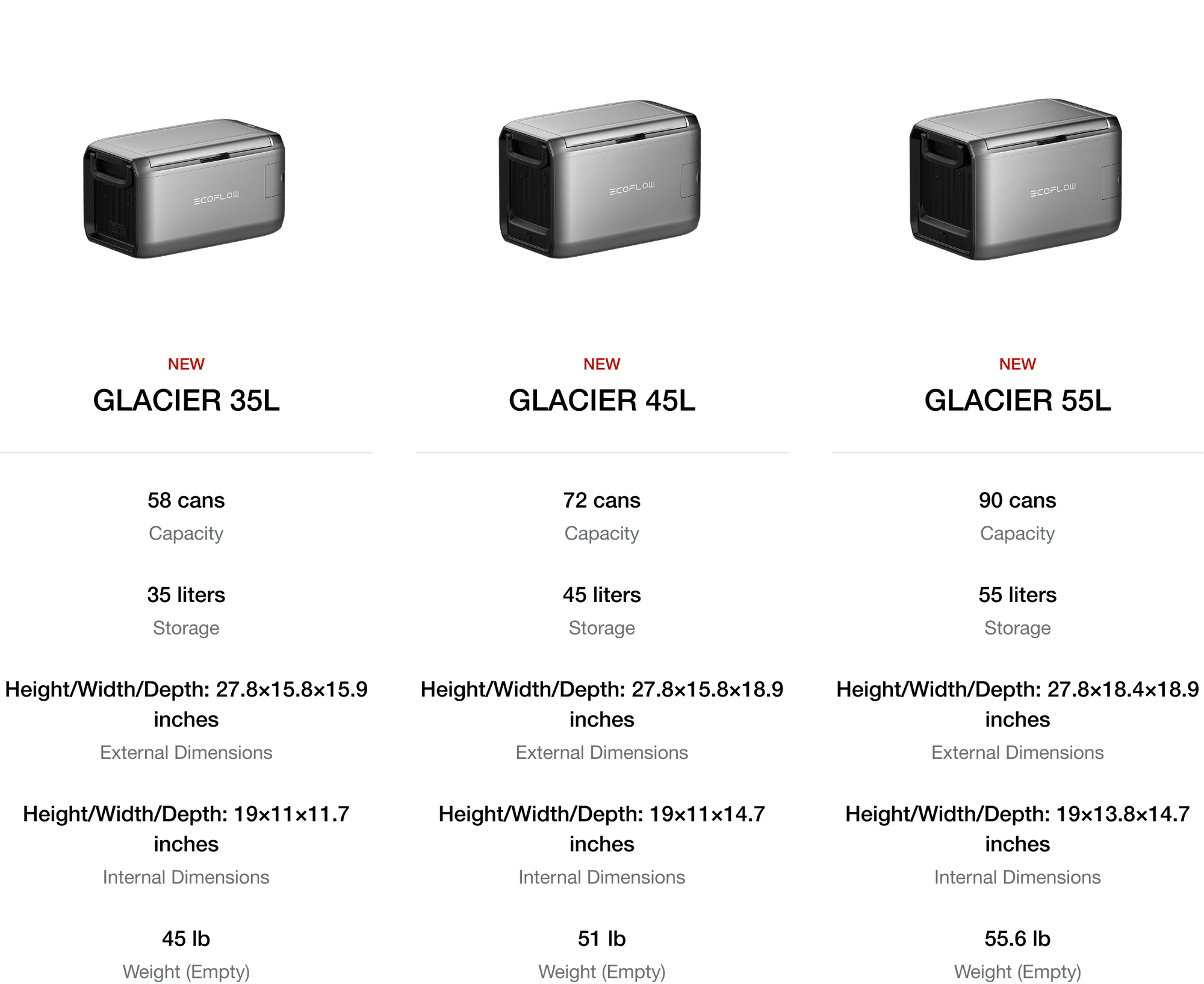 40%* more compact for extra room on the go. The space-saving design gives you more room in your car—to store other essentials. The EcoFlow GLACIER Classic fits 58 cans (35L), 72 cans (45L), and 90 cans (55L) while staying sleek and efficient.