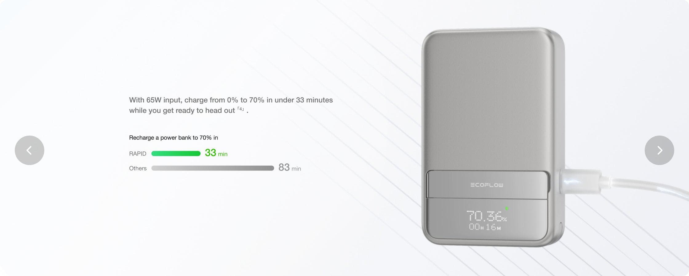 EcoFlow integrates cutting-edge battery and software technology into everyday portable use with RAPID, the new magnetic charging experience.