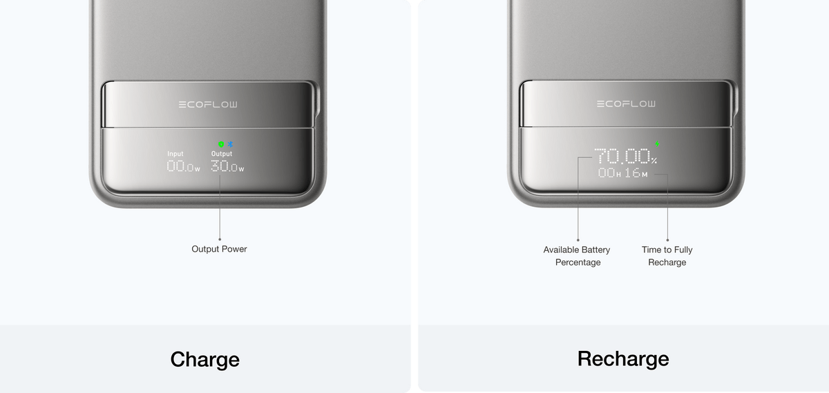 • Pantalla digital inteligente: Disfruta del máximo control con la pantalla dinámica de nuestra batería externa. Con el control inteligente de la app, puedes ver la velocidad de carga, la potencia de salida y personalizar la pantalla para darle un toque personal.