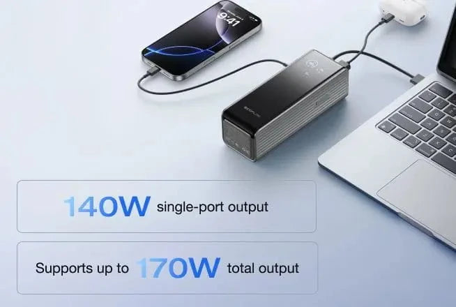 Specs - EcoFlow RAPID Power Bank (25,000mAh, 170W, 100W Built-In and Retractable Cables)