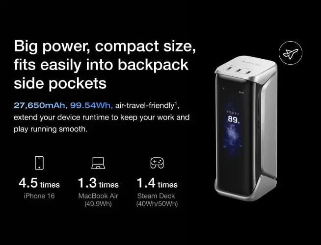Yes, according to regulations by the International Civil Aviation Organization (ICAO) and most airlines, carrying a power bank with a capacity under 100Wh is allowed. The RAPID Pro, with a capacity of 27650mAh (99.54Wh), meets this requirement and can be carried on board without concern.