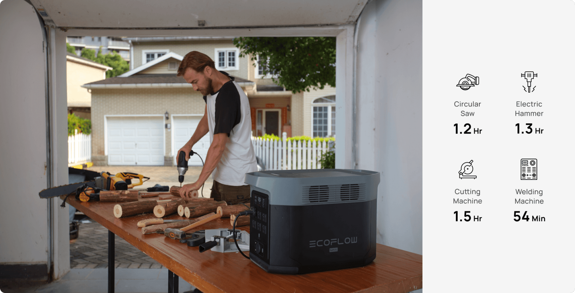 DELTA Max powers almost all the devices you need with a large 2400W AC output. With X-Boost proprietary technology, run appliances with an output of up to 3400W. Compared with similar portable power stations, DELTA 2 Max can power more devices while also preventing overloading and overheating.