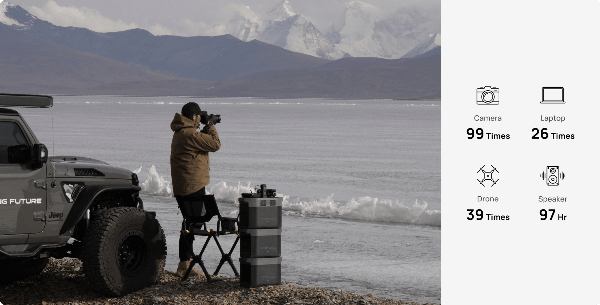 With its upgraded LFP battery chemistry, DELTA 2 Max has a lifespan of 3000 complete cycles until it reduces to 80% capacity. You'll get pretty much 10 years of power, even if you use it every day. That's 6× longer than other power stations with a similar capacity and output.