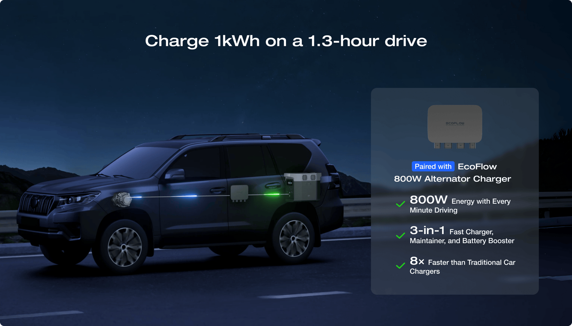 Pick from a range of solar panels to get the speed you need you need (110W, 160W, 220W, 400W).