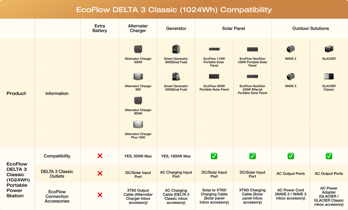 From battery chemistry to structural design, DELTA 3 Classic (1024Wh) is engineered for extreme durability, environmental resilience, and whisper-quiet performance—delivering power you can count on for over 10 years.[1]