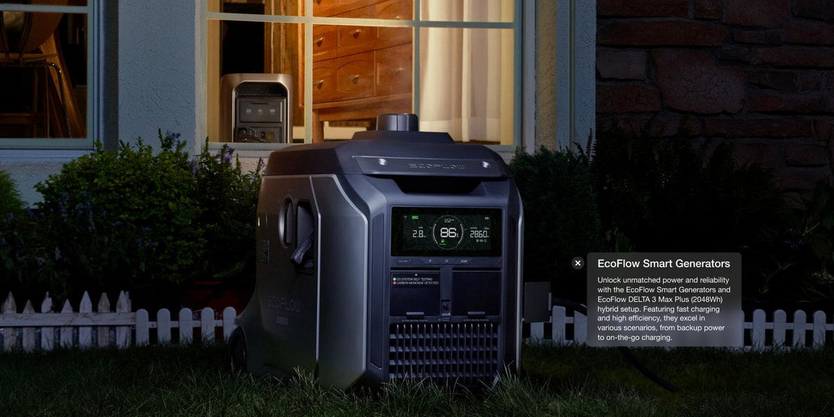 Pair DELTA 3 Max Plus (2048Wh) with EcoFlow Smart Generators to achievelonger runtime—automatically switching between fuel and battery to keep you powered through multi-day outages or off-grid adventures. [15]