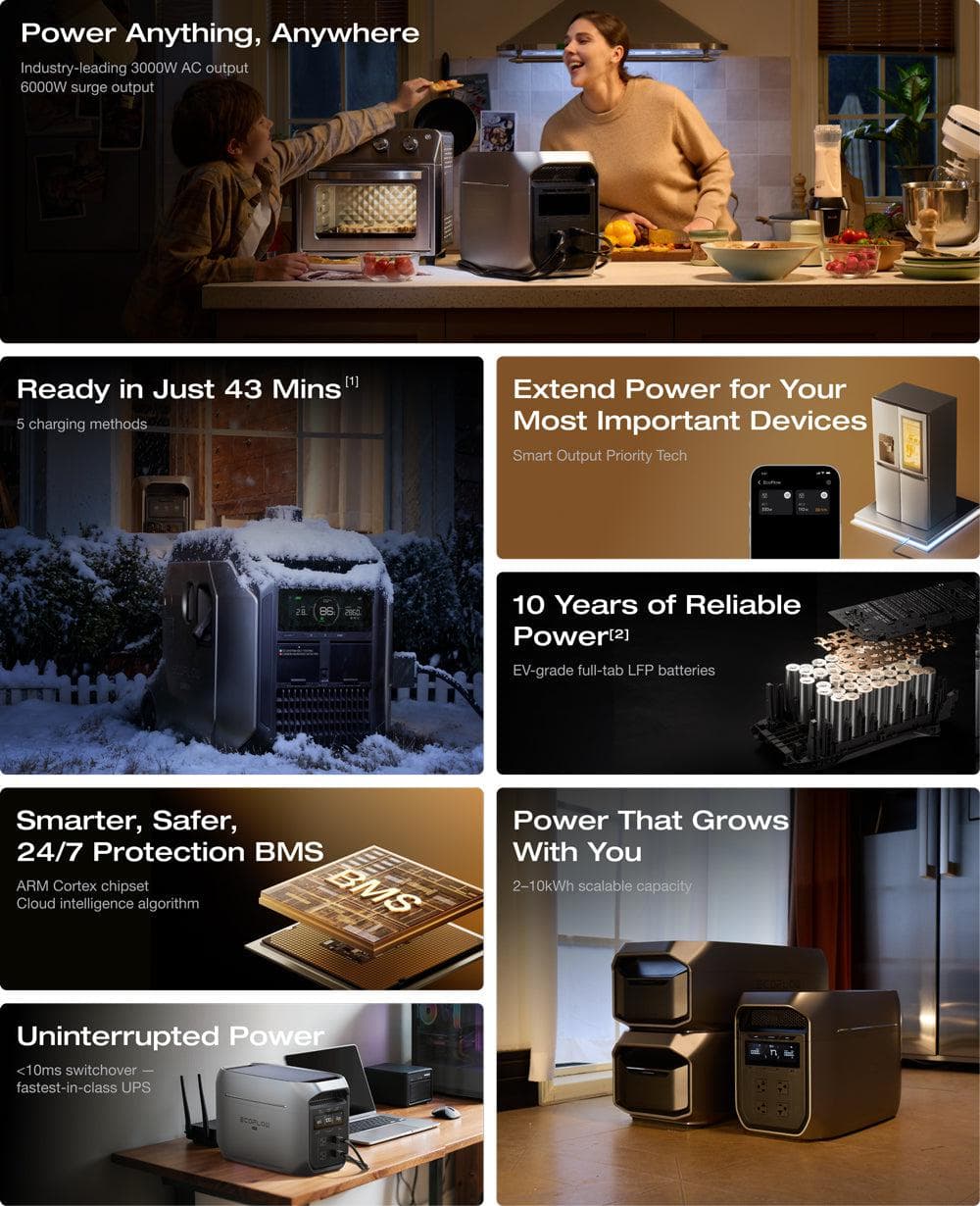 From battery chemistry to structural design, DELTA 3 Max Plus (2048Wh) is engineered for extreme durability, environmental resilience, and whisper-quiet performance—delivering power you can count on for over 10 years. [2]