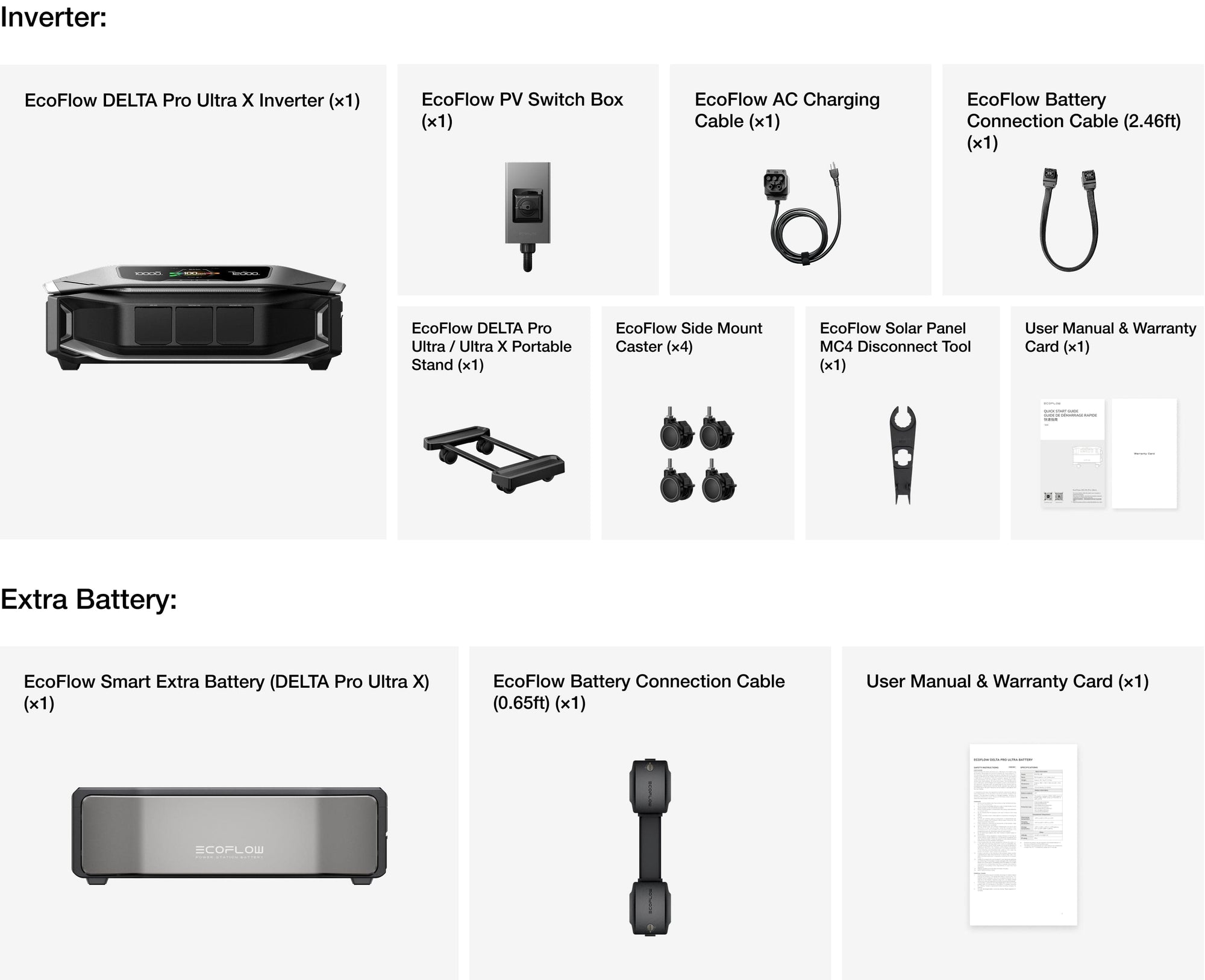 DELTA Pro Ultra X is compatible with the following products (some require additional accessories):Third-party devices: 3 - 7.2kW/12kW generators, charging piles, EV charging guns;EcoFlow products: EcoFlow Smart Home Panel 3 (32 Circuits) or Smart Gateway intelligent distribution box.