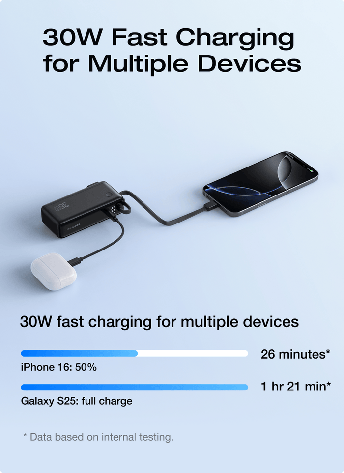 Rated capacity refers to the actual amount of power a power bank can output under standard conditions (such as 5V/3A). For the RAPID Pro 27K, the rated capacity is 15900mAh.