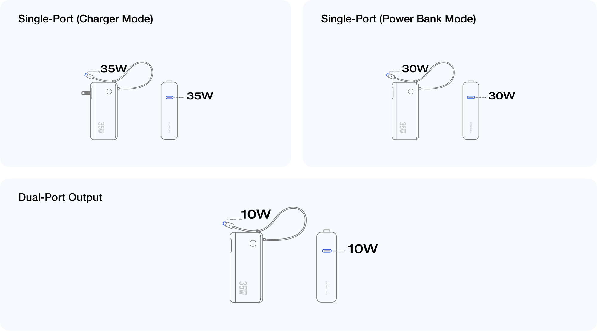 C1(Cable)/C2: 30W Max (PowerBank Mode)