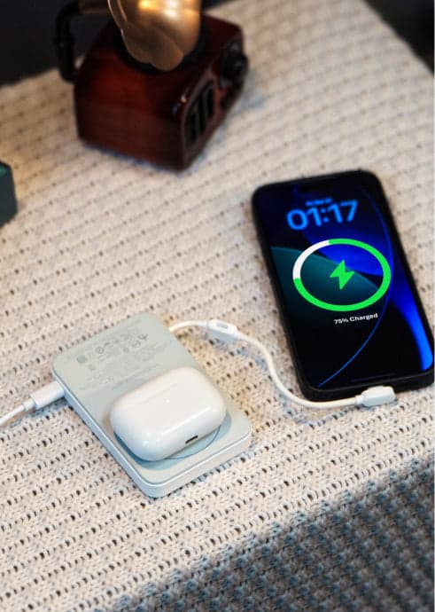 More than just a magnetic power bank—RAPID Mag is your all-in-one charging solution. Pass-through charging powers your phone, earbuds, and other devices while RAPID recharges itself. Travel light and wake up fully charged—no extra cables required.
