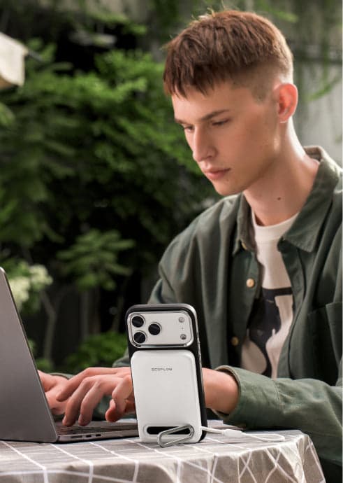 At just 5/8" (15.95 mm), it slides effortlessly into pockets, laptop sleeves, or handbags. Its slim design makes it easy to hold both your phone and the power bank in one hand.