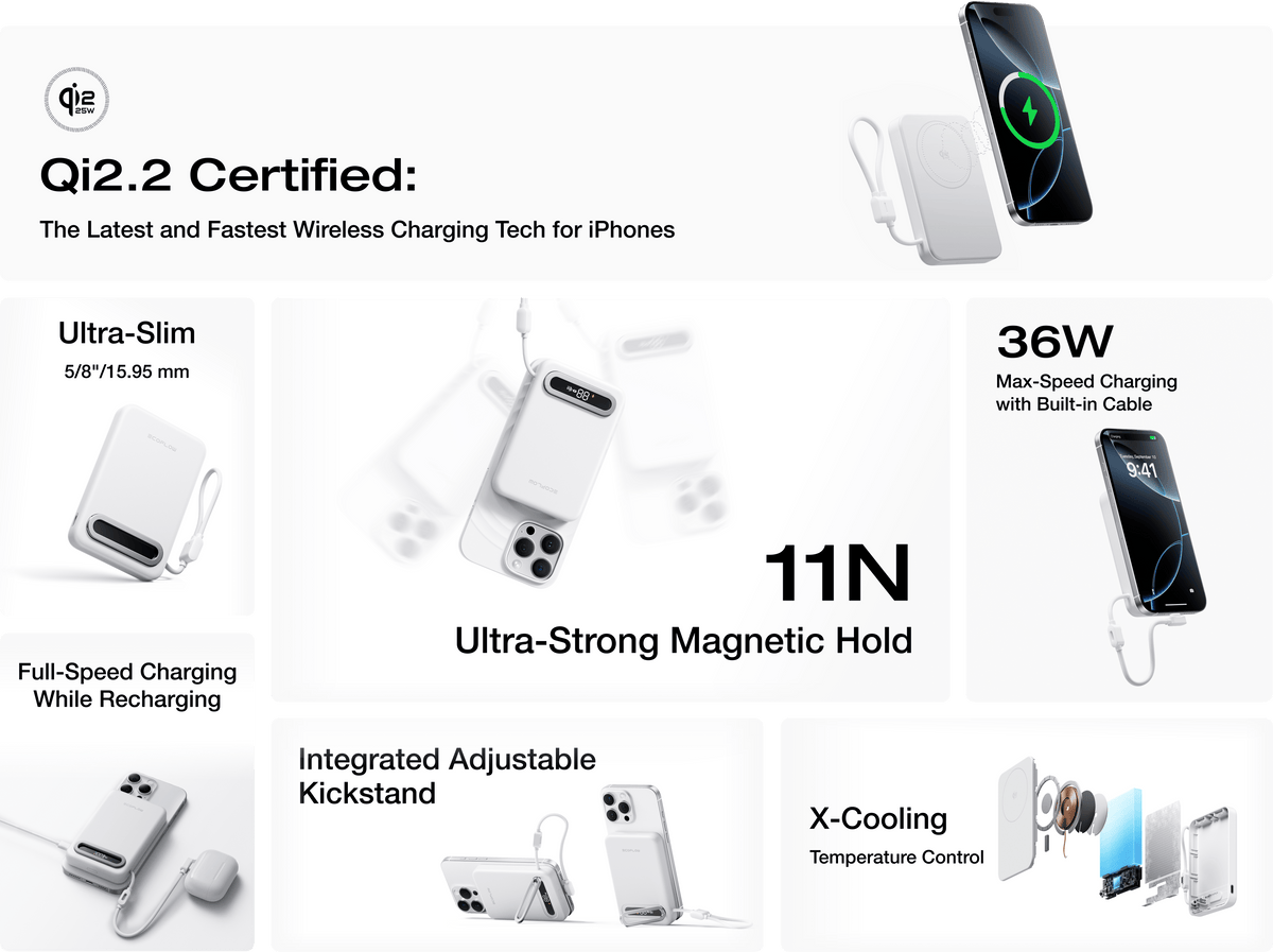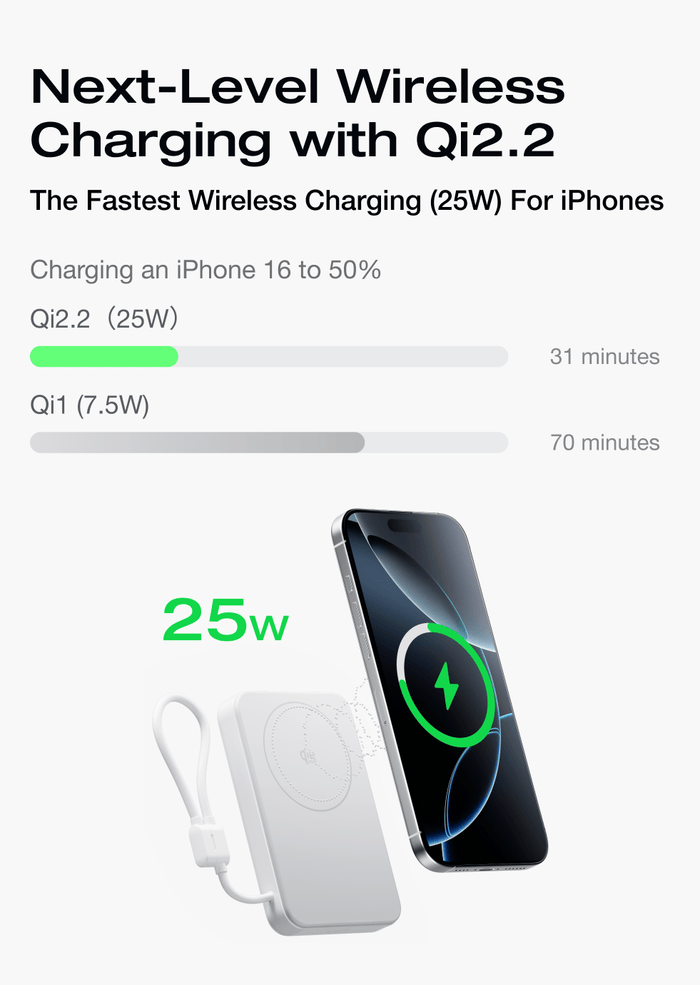 Qi2.2 25W Wireless Charging: Experience next-level wireless 25VQi2.2 fast charging-over 3x faster than Qi1 and fully optimized for iPhone 17 to deliver safe, reliable and efficient power quickly whenever you need it.