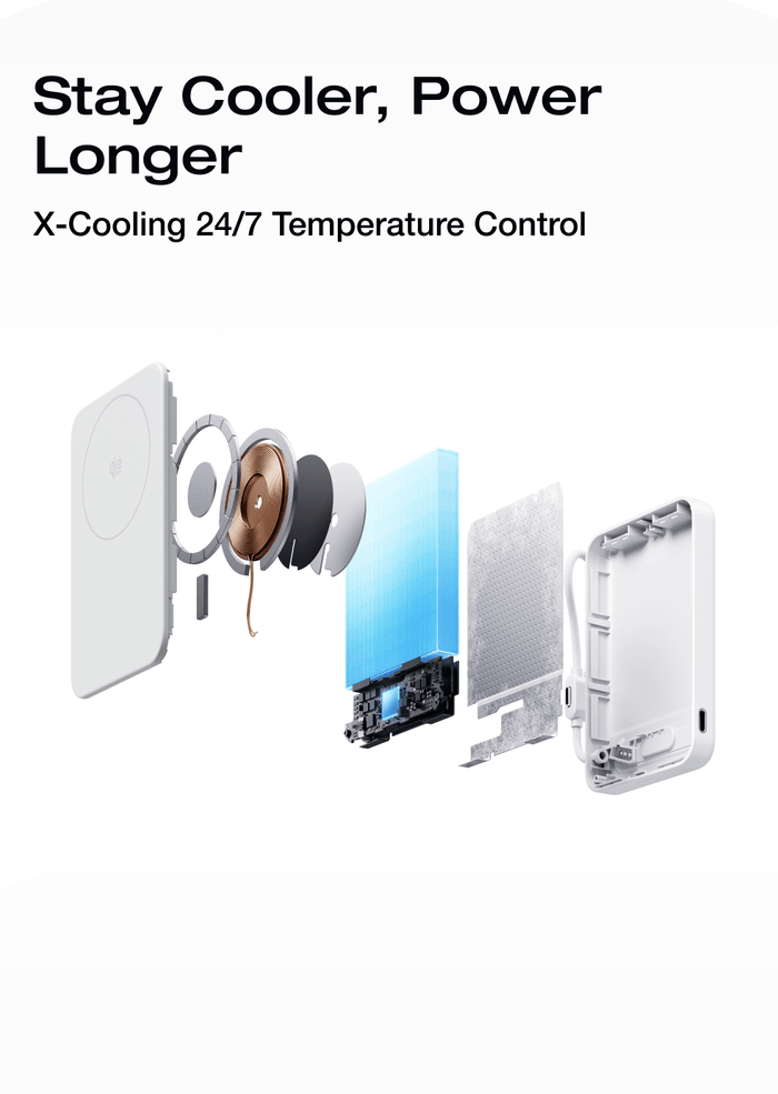 Enjoy peace of mind knowing that your power bank has passed rigorous safety test. Its exclusive cooling structure and 5+ million times per day real-time temperature monitoring keep battery below 107.6℉/42°C, reducing heat and slowing battery aging.