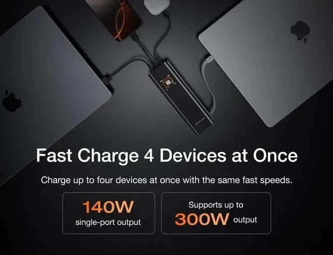 Supports pass-through charging, with the power level depending on the power requirements of the devices connected to each port.Input supports PD3.1 protocol and is compatible with PD3.0 PPS, QC3.0, AFC, BC1.2;Output supports PD3.1 protocol and is compatible with PD3.0 PPS, QC3.0, AFC, Apple2.4A, BC1.2, SCP, FCP, UFCS