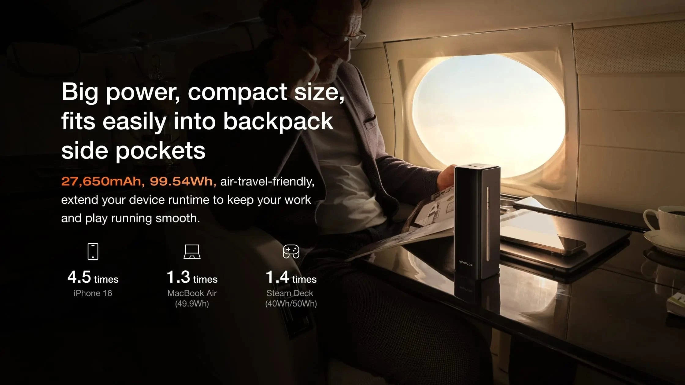Yes, according to regulations by the International Civil Aviation Organization (ICAO) and most airlines, carrying a power bank with a capacity under 100Wh is allowed. The RAPID Pro, with a capacity of 27650mAh (99.54Wh), meets this requirement and can be carried on board without concern.