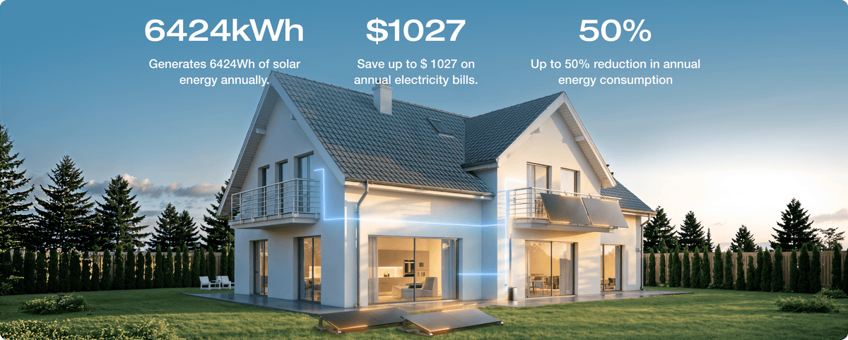 As the morning sun rises, EcoFlow STREAM Ultra, equipped with a built-in grid-tied microinverter, immediately captures solar energy for your home and automatically stores any surplus. The stored power runs your appliances at night or during short-term power outages. Generating up to 6424kWh² annually, it meets up to 50% of household needs³ while cutting electricity bills by up to $1027⁴.