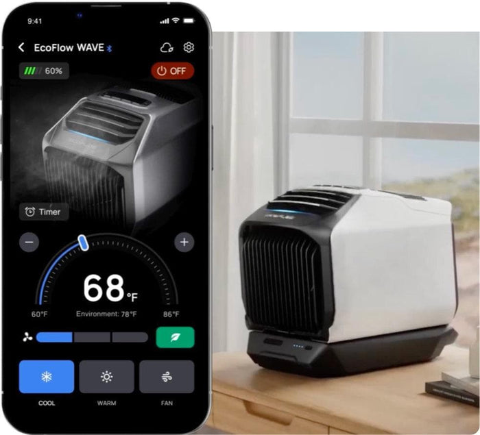 EcoFlow's tailor-made compressor enables WAVE 2 to provide 5100 BTUs of cooling and 6100 BTUs of heating. Prepare for ultimate comfort with WAVE 2!